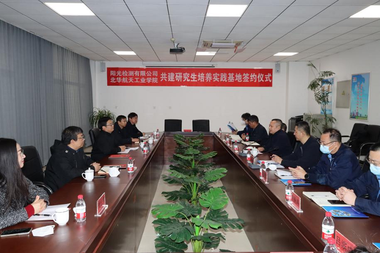 阳光检测公司与北华航天工业学院的合作由来已久。近些年,双方在学生实践教学、设备研发、软件开发等方面广泛合作。阳光检测公司为校方实践教学提供所需必要条件;校方发挥自身技术优势,将研发成果应用到企业实际工作中,为企业提高工作效率、节约生产成本发挥了关键作用。本次双方再次利用各自优质资源开展深度合作,共谋发展,不仅为校方和广大学生提供了一个非常良好的学习和实践平台,也将进一步促进阳光检测公司产业基础的升级、加快人力资源结构的调整。